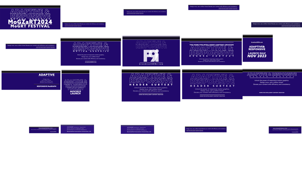 These were developed using an Adaptive Development Structure and works seamlessly with Adobe Premiere Pro's Auto Reframe Feature. The Responsive (Auto-Resizing) Text and Container/Element features help speed up workflows while ensuring Consistent Branding across each use-case.